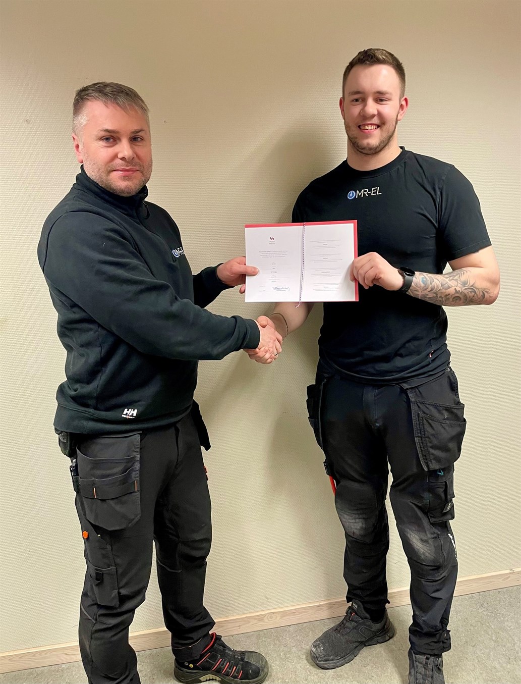 Vit ynskja honum hjartaliga til lukku við útbúgvingini, sum elektrikari